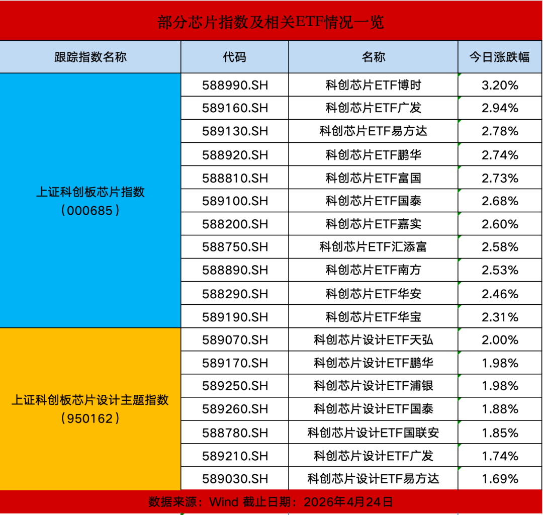 【导读】DeepSeek-V4正式上线,算力芯片概念股走高,科创芯片ETF最高日涨幅达3.2%